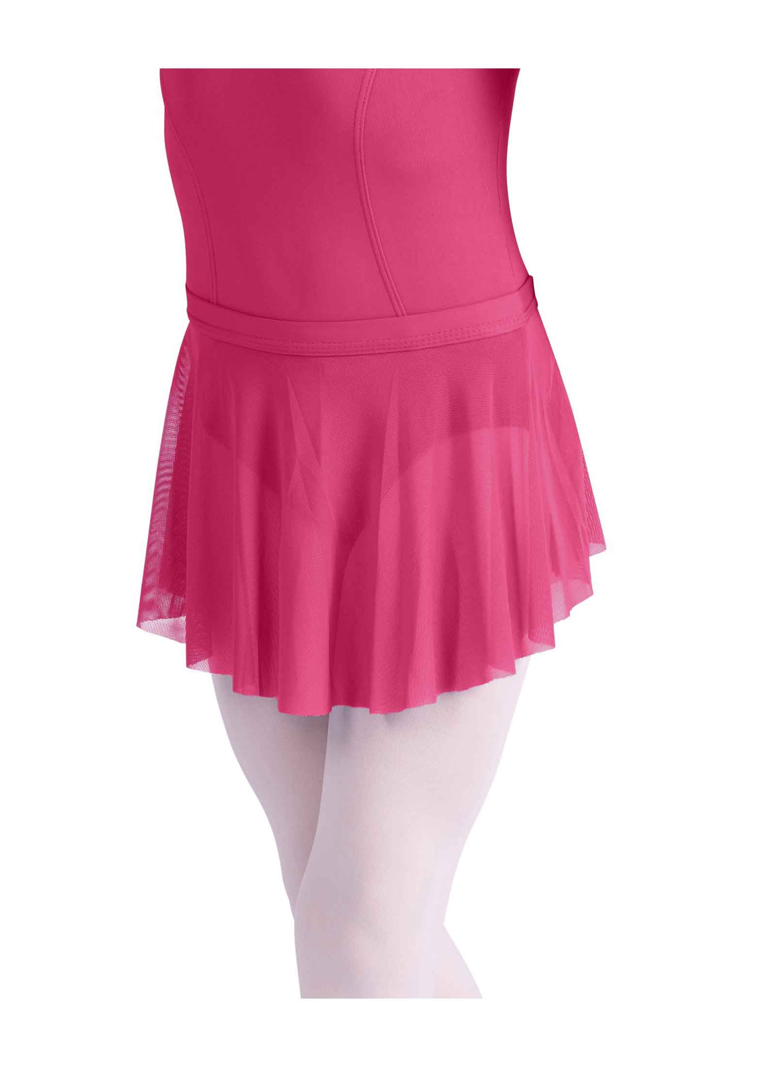 Our best mesh skirt to date! Skirt features sewn in Nylon/Spandex elastic waistband, raw edged hem and higher cut sides to elongate a dancer's line. Waistband lays flat and doesn't roll up. Mesh fabrication with enhanced soft feel and durability. Polyester/Spandex.