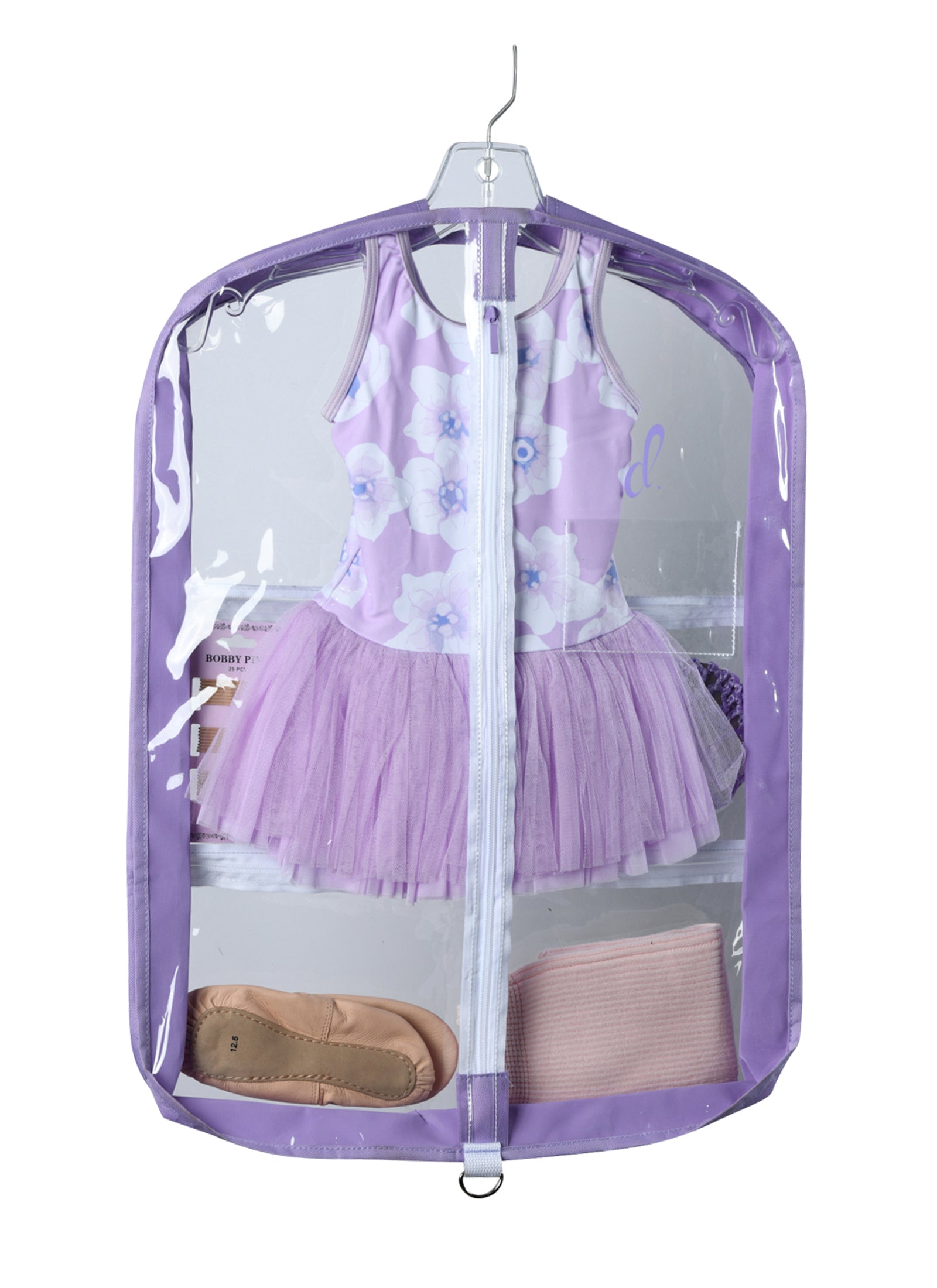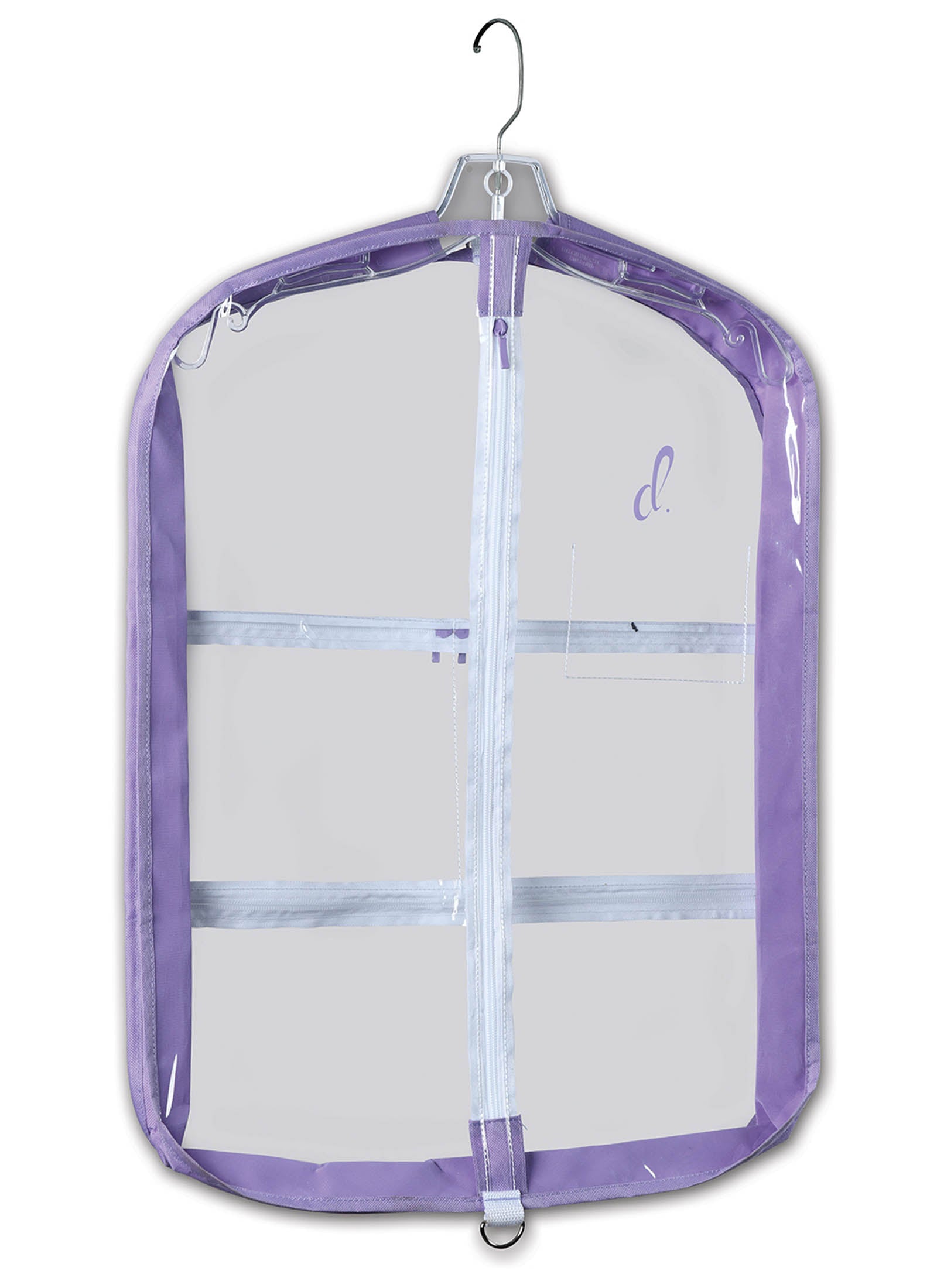 Our great selling competition garment bags are now available in a shorter length! Bags available with either pink or lavender trim and features a 2 1/2-inch expandable gusset to hold multiple garments. It also includes 3 exterior zipper pockets plus an ID card pocket. This bag is lightweight, wipes clean and folds flat.