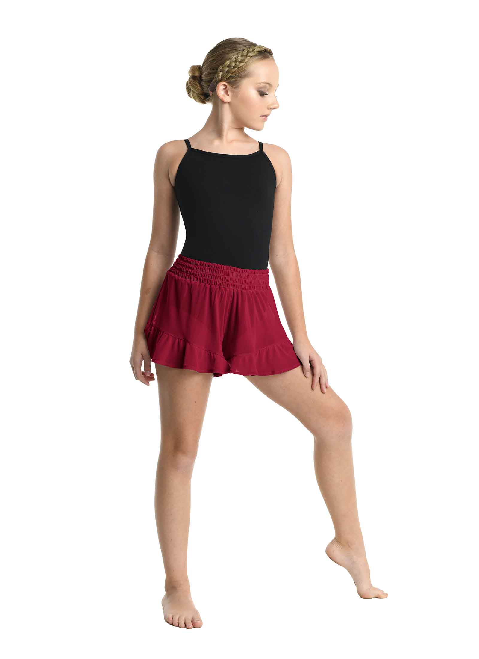 A dancer's wardrobe must, the versatile mesh short! This sheer short is perfect for dance, beach or just as an everyday coverup. The wide leg openings are super comfortable and double as a skirt look. Soft elastic waistband won't dig in and lays flat.