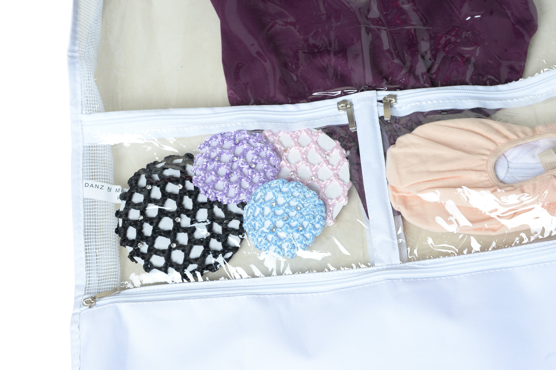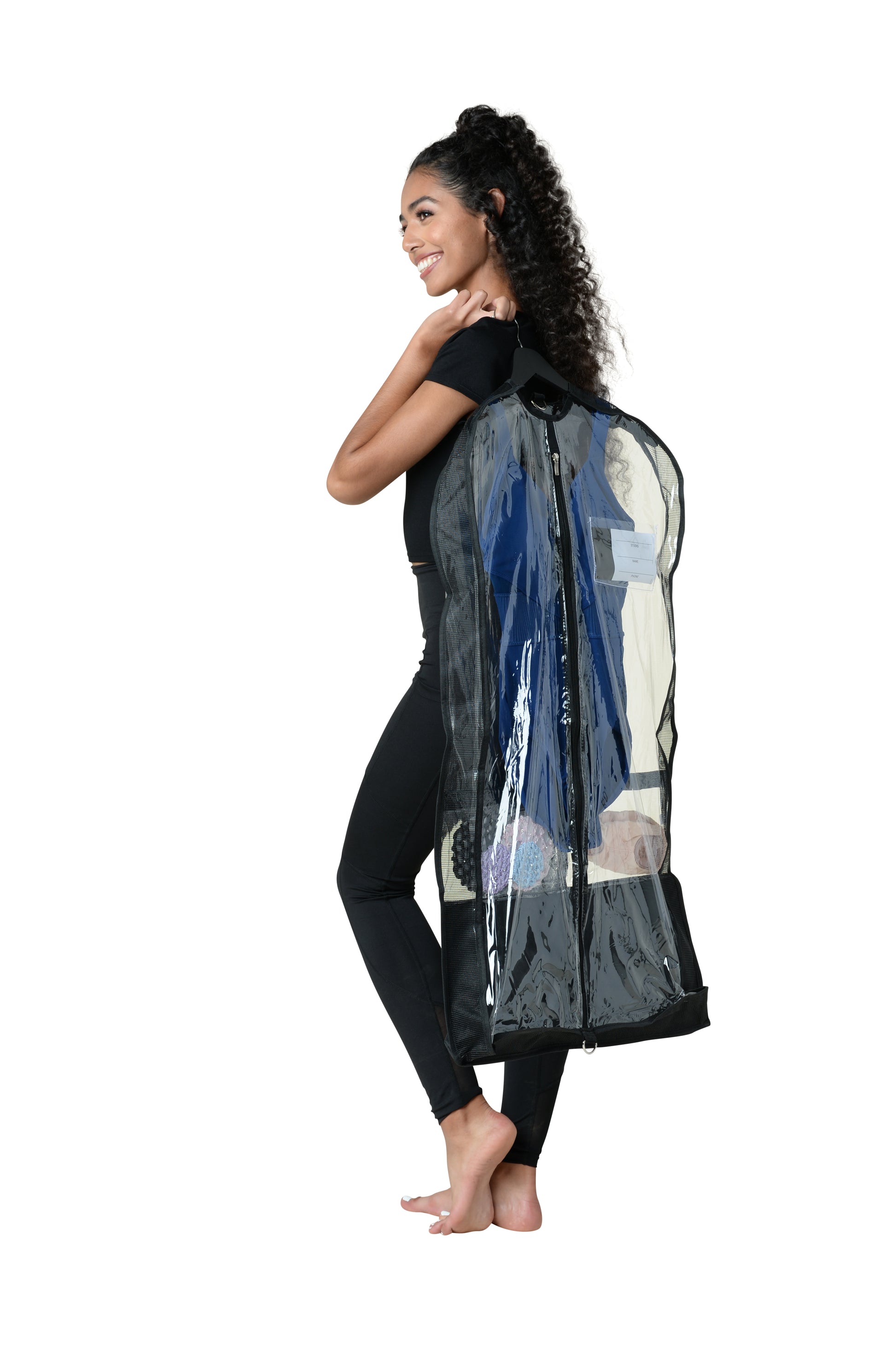 Transport, protect and store your costumes with ease! Clear garment dance bags feature a 2.5" expandable mesh gusset for breathability. Multiple zippered pockets to keep all your dance goodies and supplies in one place! Danznmotion's garment bags are lightweight and fold flat.