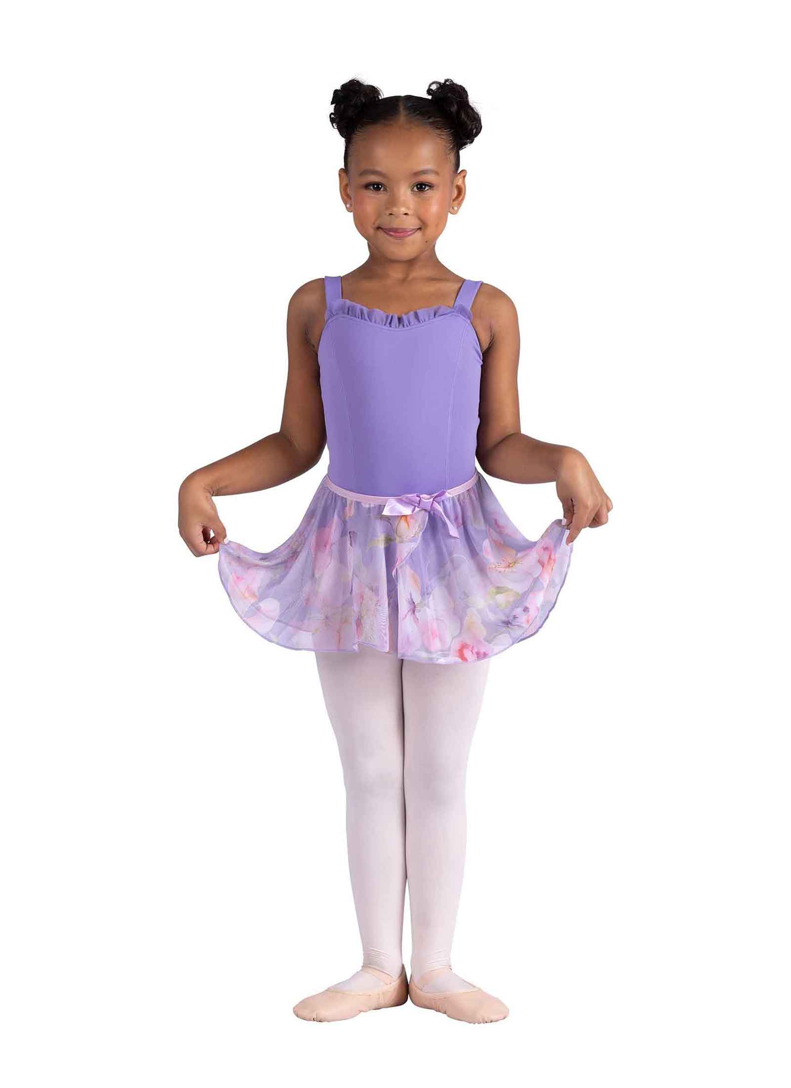 Mock wrap georgette overlapping floral print skirt with elasticized waistband and bow. Polyester.